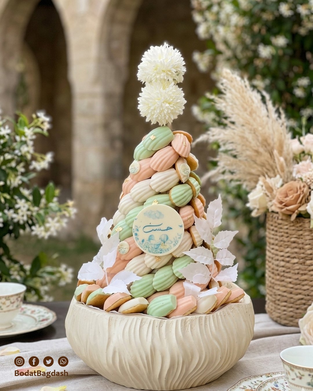 أبراج مادلين فرنسي من حلويات بقداش ✨ فخامة الطعم وأناقة التقديم لكل مناسباتكم 💛 للمواليد فرحة، وللزواج لمسة حب، ولـ"بناتي" دلال، وللجلوة حضور يلفت الأنظار 🤍 كل برج يحكي قصة… وكل قطعة تذوب حب وسعادة 😍 للحجز والطلب : 0502975175